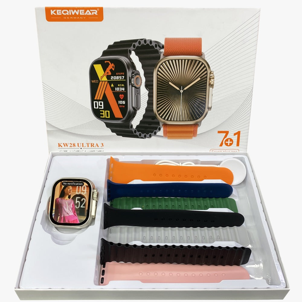 βπ₯ Keqiwear KW28 Ultra 3 Smartwatch β 7 Straps | Bluetooth Calling | 1.8β HD DisplayΒ