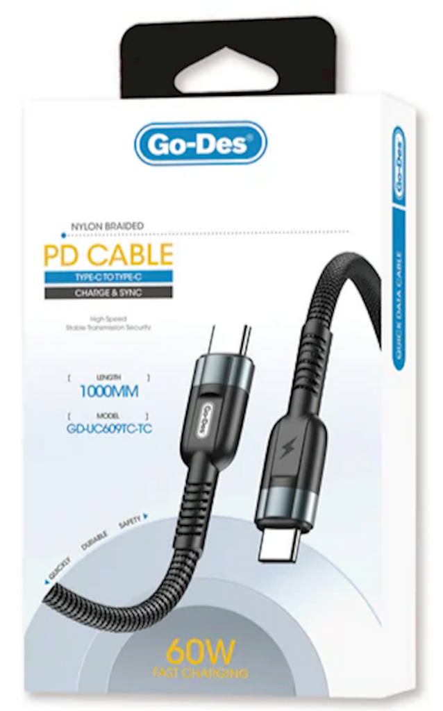 Get your Go-Des GD-UC609TC-TC Nylon Braided PD Cable today and experience premium charging performance every day.